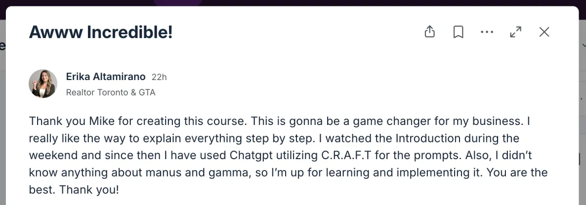 70+ Step-by-Step Training Videos: Complete implementation guides for every AI tool and strategy, with real-world examples and case studies. (Value: $1,997)