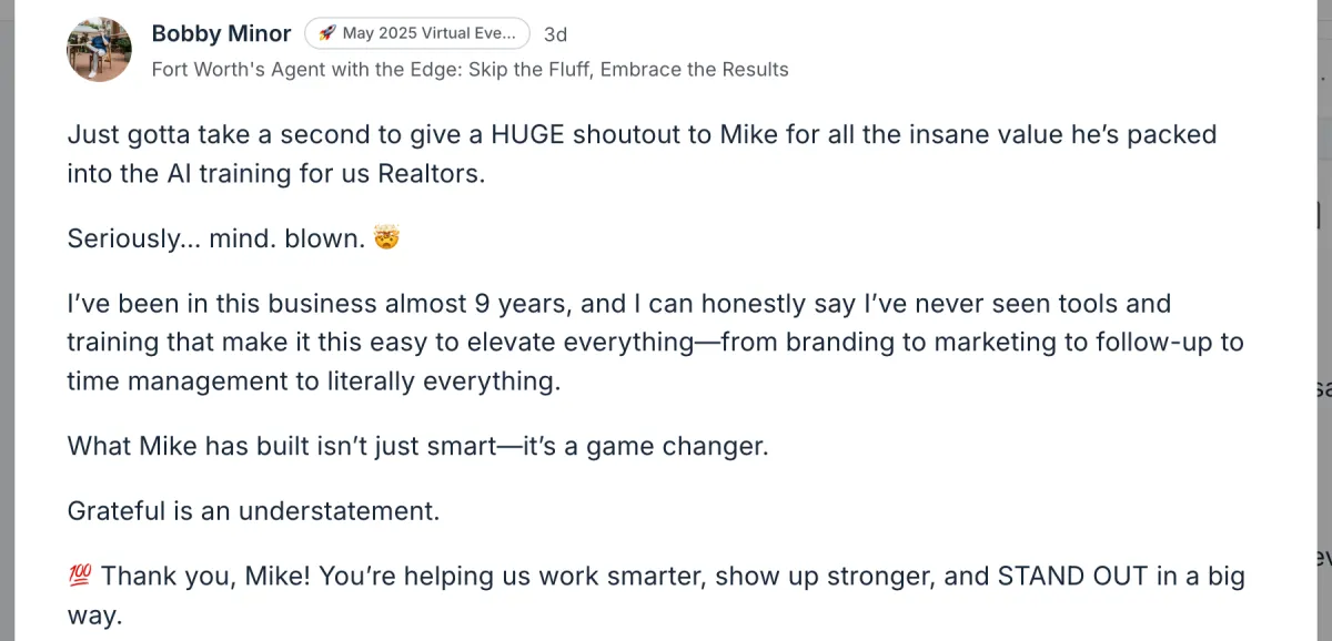 Perfect! You'll build your business the RIGHT way from day one with AI, while experienced agents have to unlearn old manual habits.