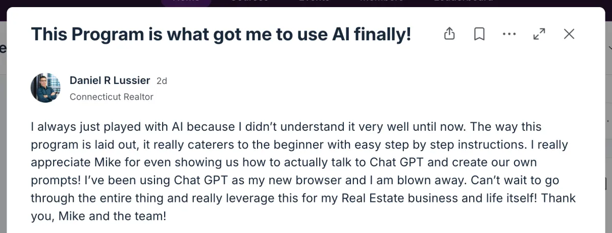 Why Join Today? We maintain a strict limit on our AI membership to ensure every agent gets the personalized AI coaching and support they deserve. With our expert AI coaches providing weekly live support to our successful members, we occasionally need to close enrollment to maintain our high standards of AI coaching quality.